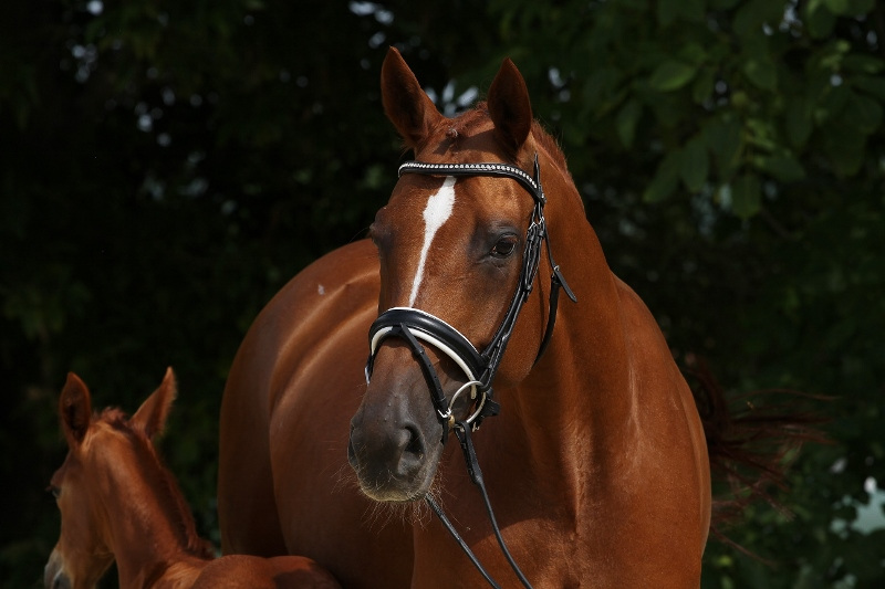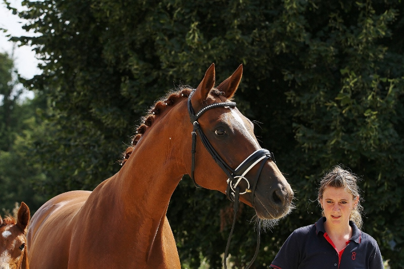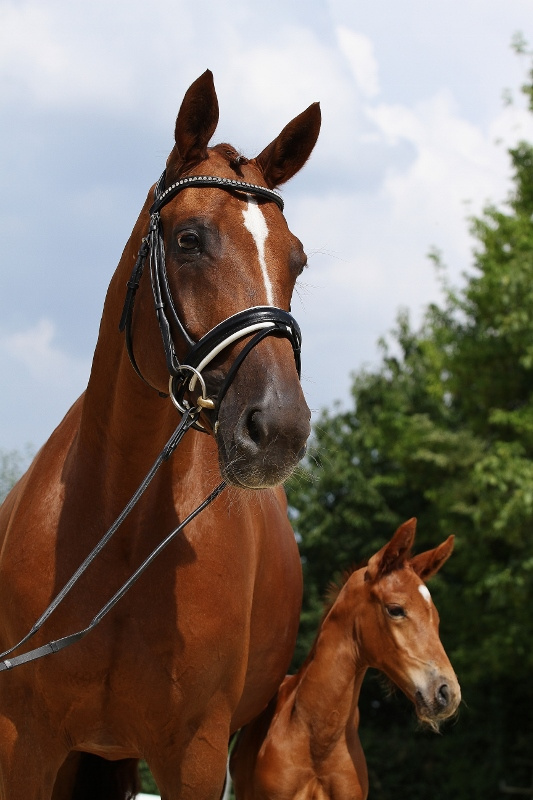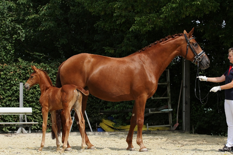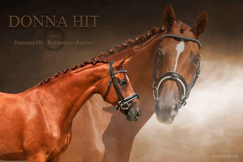 Unsere Donna Hit entspringt einem der leistungsstärksten Stutenlinien Oldenburgs: dem Heidila-Stamm, welcher bei Familie Gerdes (Wangerland) gepflegt wurde. “Donna Hit” war selbst Eliteauktionsfohlen (damals Diana Ross) sowie im Sport erfolgreich und wurde 2. und 3. in den Qualifiakationsprüfungen zum Nationaal Kampioenschap jonge paarden LRV, wo sie im Finale 7. wurde (vergleichbar mit dem Deutschen Bundeschampionat). Weiterhin wurde sie in Belgien erfolgreich bis zur Klasse L vorgestellt, bevor sie wieder nach Deutschland wechselte und in die Zucht genommen wurde. Gleich ihre ersten beiden Fohlen v. Jazz wurden zur Elite-Fohlen-Auktion in Vechta zugelassen. Jazz Hit von Jazz (2013) wechselte über die Auktion an einen renommierten Hengstaufzüchter und ist mittlerweile hocherfolgreich in den USA unterwegs. Donna Hits Tochter Verb.Pr.St. Heidezauber T (v. Jazz) verbleibt ebenso wie Ol.H.Pr. A . Heidefürstin (von Fürstenball) im eigenen Züchterstall. Die Mutter Elitestute “Heidemädchen” brachte mit De Niro den gekörten und prämierten Sohn Degas, der seinen 30-Tage Test mit der dressurbetonten Endnote von 8.29 absolvierte, sich fünfjährig zum Bundeschampionat qualifizierte und dort die Bronzemedaillie gewann, im Grand Prix Sport mit Peter Koch hocherfolgreich war und inzwischen unter Alexandra Bimschas Grand Prix Siege erlangen konnte. Der gekörte Hengst Marinus von Manolete xx sowie die im Grand Prix Sport erfolgreichen Pferde Friderikus Rex (v. Furioso II) (Jürgen Böckmann) sowie Heidemädchen´s Vollbruder Ringo (Theresa Rochelt / AUT) sind weitere Aushängeschilder dieses hochwertvollen Stammes. Pferde, wie der Bundeschampion und Springpferdevererber Landor S, dessen gekörter, bis Grand Prix erfolgreicher Vollbruder Lagoheidor, oder Lambrusco Ask v. Landor S, der auf den Stamm ingezogen ist, entspringen dieser Linie. Das Olympia-Reservepferd Coulthard und zahlreiche erfolgreiche Sportpferde gehen aus dem Stamm hervor. Auch die 2002-er Bundessiegerstute der springbetonten Stuten – Lady Heida – entspringt diesem hochwertvollen Stutenstamm! Weitere Pferde aus Stutenstamm der Heida/Heidila, sind wie u.a. Roxihno v. Rohdiamant, der unter Holga Finken auf Grand-Prix Niveau erfolgreich war (unter anderem qualifiziert zum Nürnberger Burgpokal), Corlando S v. Corlando ebenfalls im Grand-Prix unterwegs. Sir de Hus v. Sir Donnerhall ist hocherfolgreich unter Stéphanie Childéric in Frankreich unterwegs. Die Großmutter El./St.Pr.St. Heidemarie brachte den S erfolgreichen Fredericus Rex v. Furioso II sowie Heidemädchens Mutter, die El.St. Heideblüte v. Ramino. Die El.St. Heideblüte brachte mit Rubinstein I die beiden Vollgeschwister Rosseau (Ringo), erfolgreich bis Grand-Prix unter Theresa Rochelt/AUT sowie El.St. Heidemädchen, die Mutter von Donna Hit. Dieser Stamm brachte ebenfalls zahlreiche Auktioniken, wie jüngst Quasi Royale, die Preisspitze der Summer Mixed Sales 2013, etliche Elite-Fohlen in Vechta sowie schauerfolgreiche Stuten (u.A. Brilliantringstute Heiderose v. San Amour/Stall Münstermann, Werl) bei der Elitestutenschau in Rastede hervor. Auch die Brillantringstute und Oldenburger Vize-Landeschampioness Heide Queen OLD v. Bordeaux a.d. Vb.Pr./El.St. Heideprinzess (Andrea Müller-Kersten) kommt aus dem direkten Stamm.
